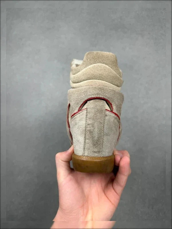 Elevate your street style with these authentic Isabel Marant Bekket wedge sneakers  leather. A signature piece from the French designer, the Bekket features a hidden wedge heel, velcro straps, and a sleek high-top silhouette — blending comfort with effortless chic.